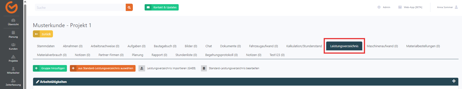 Das Standard-Leistungsverzeichnis Das Standard-Leistungsverzeichnis kann im Verwaltungssystem unter "Admin" → "Leistungsverzeichnis" angelegt werden. Hier können Sie verschiedene Gruppen und Tätigkeiten festlegen, die später leicht zu einem ...