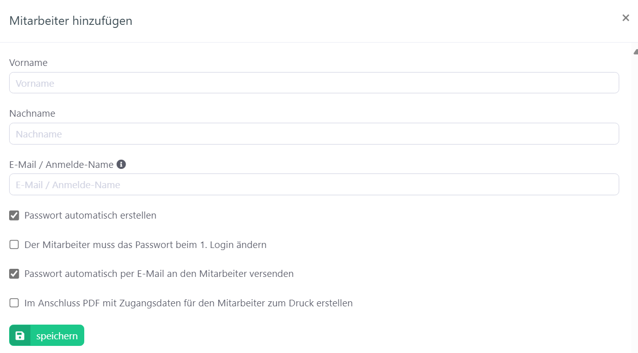 - Eine E-Mail-Adresse ist optional, kann jedoch eingetragen werden, um dem Mitarbeiter Benachrichtigungen per E-Mail zu ermöglichen.