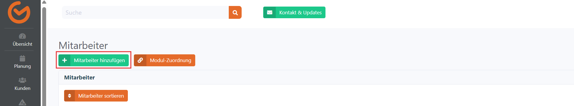 1. Gehen Sie im Verwaltungssystem auf "Mitarbeiter" und klicken Sie auf "+ Mitarbeiter hinzufügen".